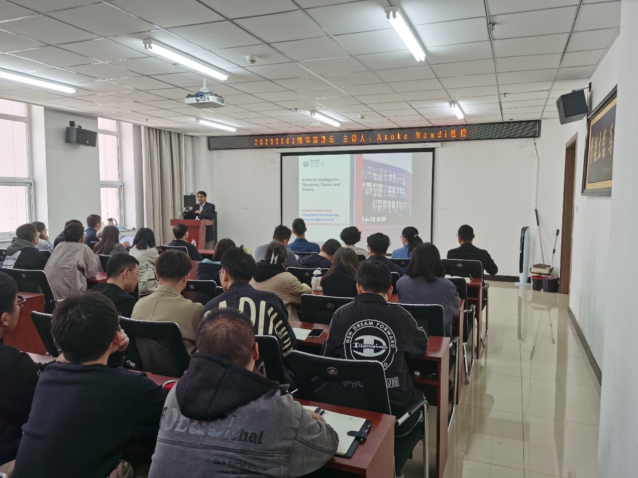 2023年4月11日上午,学院于科学楼B座715学术报告厅举办了研究生第20230503期华彩讲坛。本次学术讲座邀请到了英国布鲁内尔大学电子与计算机工程系教授、英国皇家工程院院士、7个学会会士(包括IEEE Fellow、IET Fellow)以及芬兰国家FiDiPro计划杰出教授Asoke K. Nandi。他的讲座主题为《Artificial Intelligence–Machines, Genes & Brains》。学院广大青年教师、研究生积极参与了此次学术交流会。