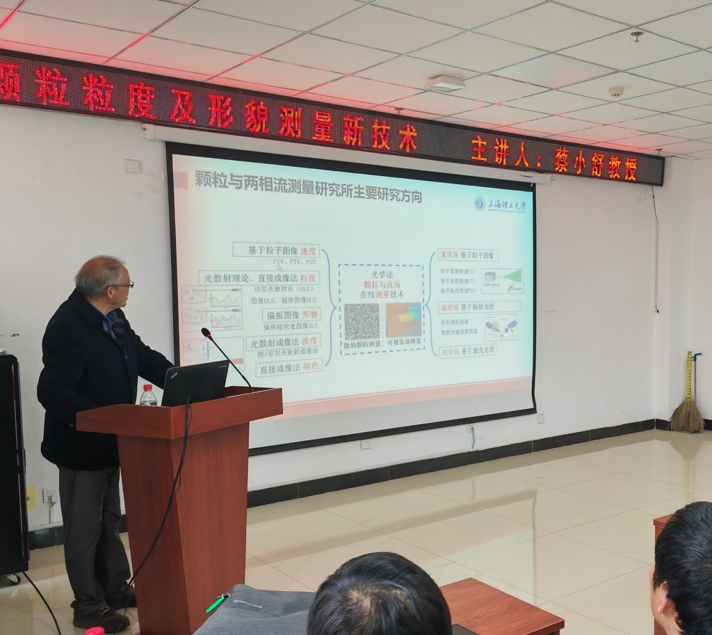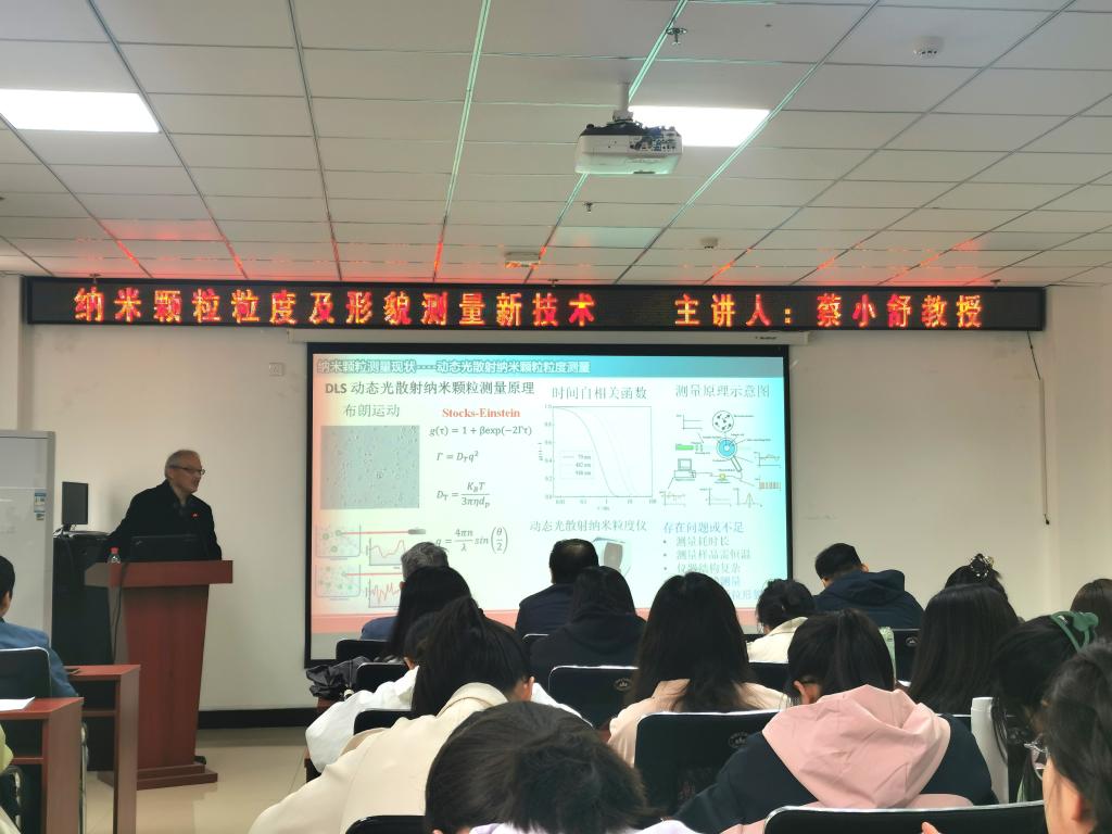 在科学楼B座715会议室成功举办了研究生第20240506期华彩讲坛。本次讲坛特邀上海理工大学的蔡小舒教授主讲,题为《纳米颗粒粒度及形貌测量新技术》,讲座由副院长刘吉主持,学院广大教师和研究生积极参与了此次讲座。