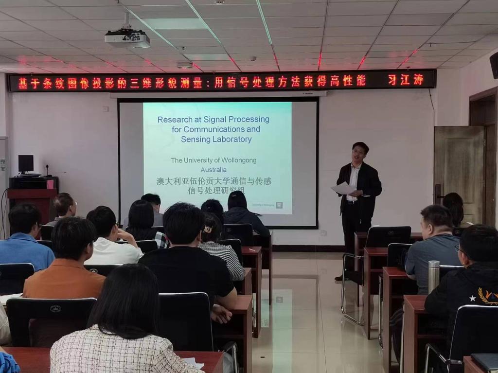 在科学楼B座715会议室成功举办了研究生第20240507期华彩讲坛。本次讲坛特邀澳大利亚伍伦贡大学习江涛教授主讲,题为《基于条纹图像投影的三维形貌测量:用信号处理方法获得高性能》,讲座由杨风暴教授主持,学院广大老师和研究生积极参与了此次讲座。