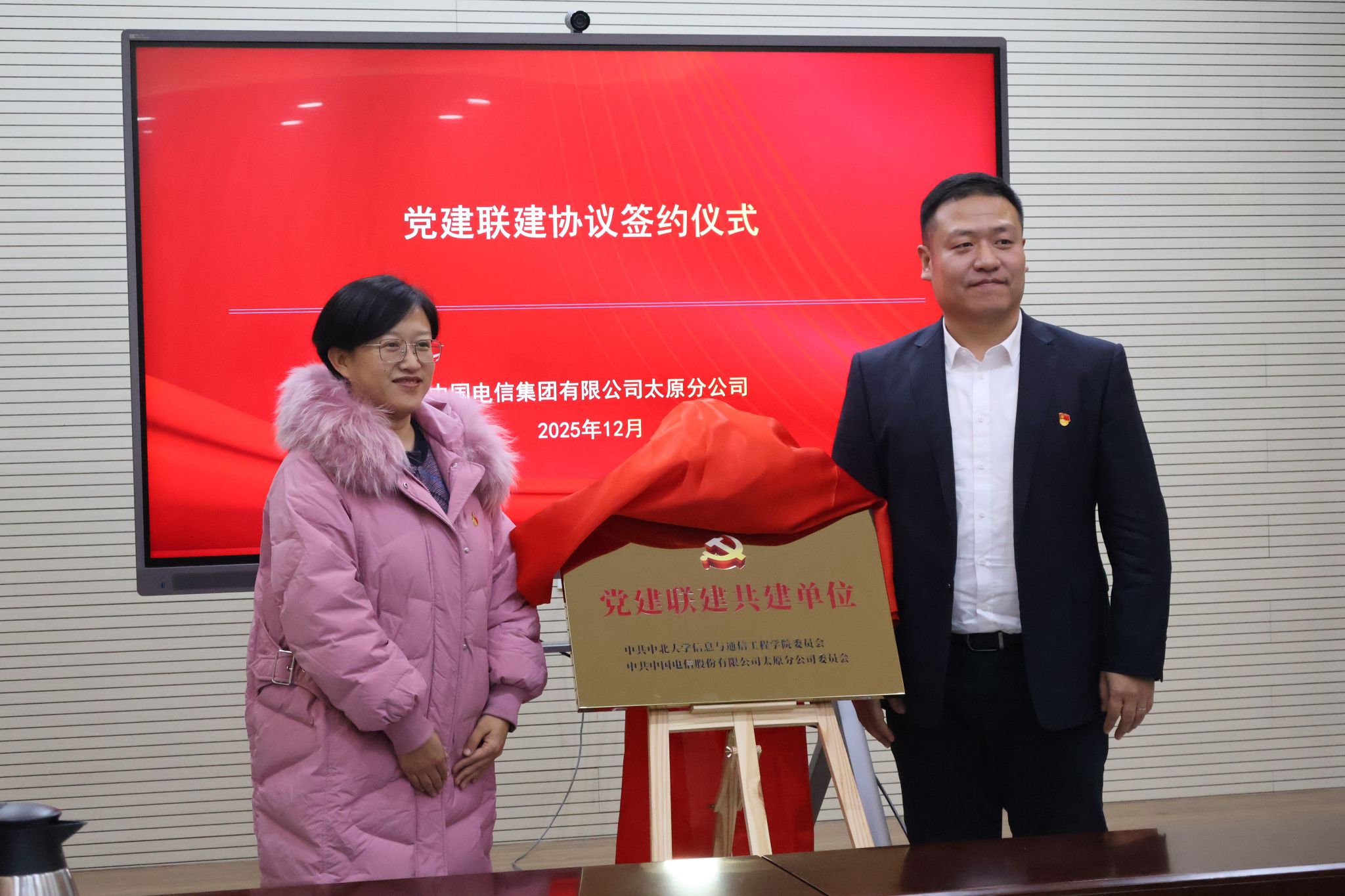 活动最后,校企双方共同为“党建联建共建单位”揭牌。双方将紧扣“组织共建、资源共享、活动共联、发展共促”的合作目标,在党建品牌创建、科研项目联合攻关、就业创业协同培育等领域开展常态化、深层次合作,为双方高质量发展注入强劲红色动力。