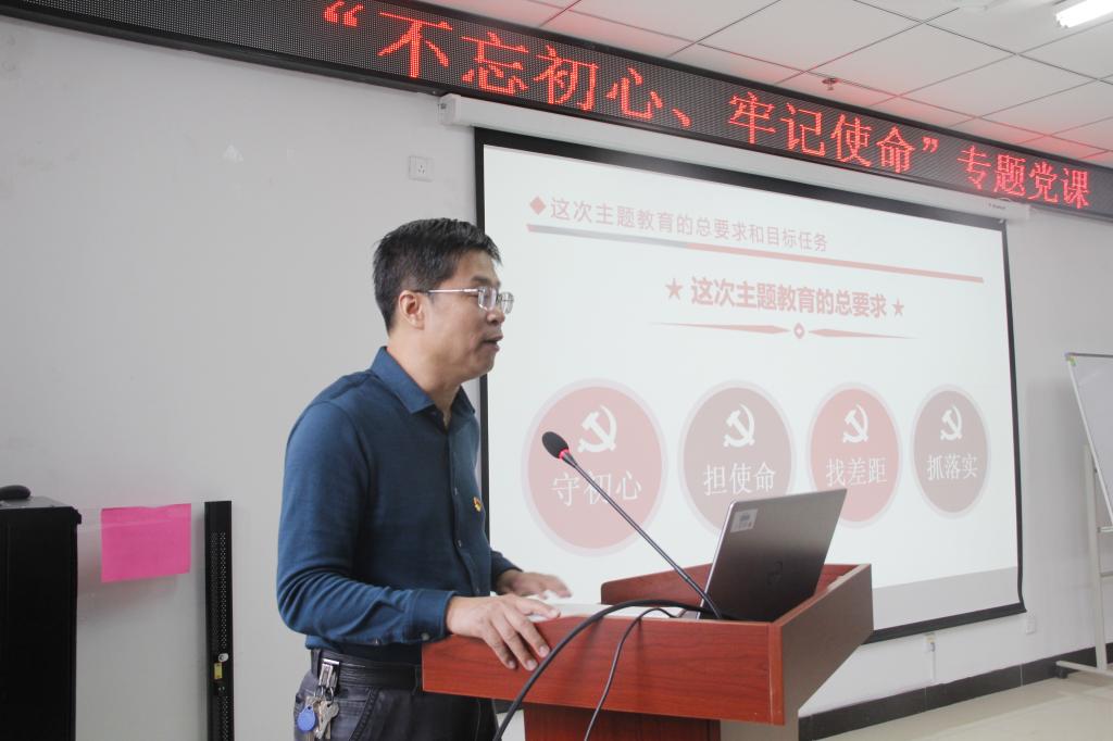 随后,曹书记就自己学习党的十九大精神和习近平新时代中国特色社会主义思想的收获、感悟与思考,与全体党员同志们做了分享。曹书记首先从中国共产党的“初心”是什么开讲:“初心”就是不忘历史、敢于担当、不忘人民;其次是共产党人为什么要“不忘初心”?因为“初心”是党的行动纲领、奋斗目标、是党前进的动力,是党的优良作风;以及共产党人如何做到“不忘初心”?曹书记倡导大家要坚定信念跟党走、直面使命敢当担、挺纪在前不逾矩、无私奉献有作为、立足岗位做贡献。最后,曹书记用“坚持提高党性修养、补思想之钙、固党性之元、铸党性之魂”,“平时能看出来、关键时刻能站出来,危机关头能豁出来”与大家共勉!