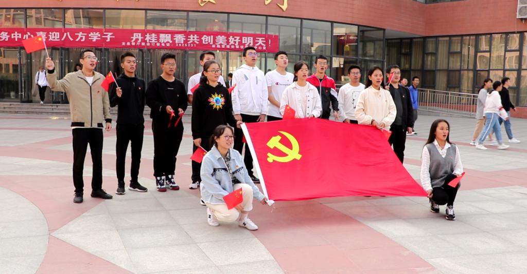 入党积极分子、发展对象、学生党员在学生党支部支委的带领下,分别在龙山餐厅、柏林园、教室开展了庆祝祖国生日活动。大家手拿小红旗,齐声歌唱《我和我的祖国》,走过食堂、科学楼、图书馆、主操场……歌声飘荡在校园的每个角落,表达莘莘学子对祖国的深厚感情,同时激发围观群众的爱国热情。
