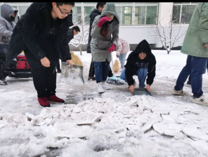 东至学生宿舍区、电工电子实验中心,西至一号教学楼前长达数千米的中央大道,同志们分工有序、热情高涨。大家齐心协力,配合默契,铲的铲、推的推、扫的扫,把校园道路上的残雪一点点挖起来,并运到路旁边。冬日的寒风阻挡不住党员清扫积雪的热情,忙碌的身影构成了冬日一道亮丽的风景线。经过大家的齐心奋战,道路变得干净畅通,为师生的通行提供了便利,营造了干净整洁的校园环境。