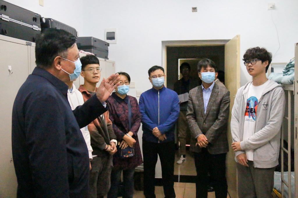 党委书记曹凤才、院长杨风暴、院党委副书记兼副院长魏媛媛、国家级电工电子实验教学中心主任兼副院长王黎明以及学院各系主任和副主任共同走进新生宿舍,慰问2020级新生。