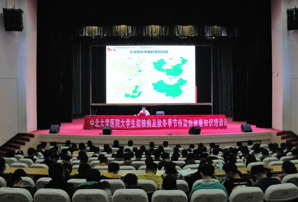 新生安全教育由学生科毛凯娜老师作为主讲人,中北大学医院公共卫生科赵海滨医生主讲传染病健康知识专题讲座。