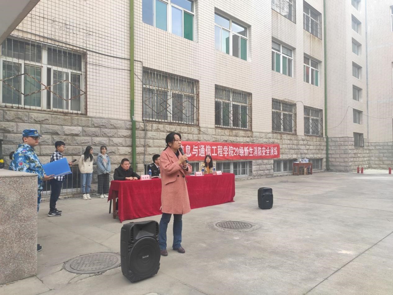 新生的日常安全工作,提高新生安全防范和自救能力,及时排除消防安全隐患,学院于10月24日下午在文韬五公寓楼前,举办了2020级新生消防安全演练,由安全健康教育中心的郝计成教员作为主讲嘉宾,学院党委副书记兼副院长魏媛媛出席了本次活动,参与活动的还有学生科毛凯娜老师和胡傅强老师。