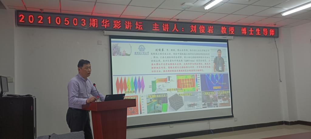 2021年4月21日下午15点,哈尔滨工业大学航空宇航制造工程系刘俊岩教授应邀来校进行学术交流,并在科学楼B座715学术报告厅做了题为“扩散波、光声探测方法与红外视觉无损检测新技术”的学术报告。