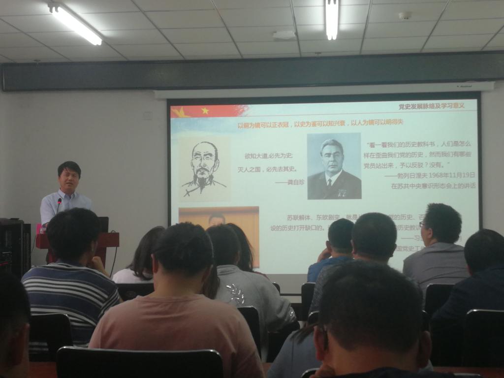 最后,曹书记用“让党史国史之光照亮未来,给力中华民族伟大复兴的‘中国梦’”一言与大家共勉。整场党课严肃而不失激情,让人精神为之一振。重温党的光辉历程,让大家再度从党的艰辛曲折中体会美好生活的不易,从经验教训中获取克敌制胜的法宝,从发展前进中感悟思想真理的伟力,使全体党员更加坚定道路自信、理论自信、制度自信、文化自信,更加坚定不移跟党走。