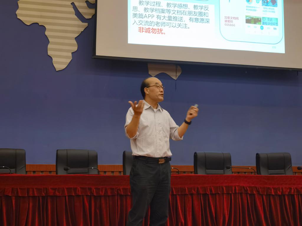 陈少昌教授以《回归内涵发展,落实以学生为中心的教与学》为题,结合自身多年课堂教学改革实践经历,围绕前沿背景、实践过程、主要方法、应用成效及主要创新等五个方面就高等教育发展形势、课堂教学改革、如何提高课堂教学质量与师生互动等进行了详细的阐述。