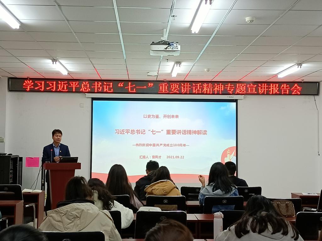 党委书记曹凤才作题为《以史为鉴、开创未来——习近平总书记“七一”重要讲话精神解读》专题讲座,全院师生党员参加了本次学习。
