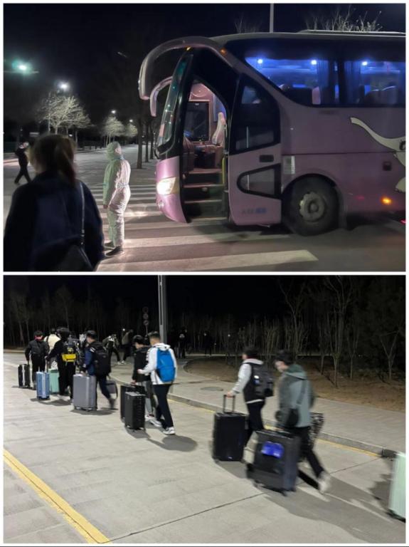 辅导员协助疫情防控办组织转运学生,其中2名辅导员舍小我顾大我,自愿奔赴隔离点担任工作人员,陪伴守护学生,给学生和家长一颗“定心丸”。最后车子走了以后,已经是凌晨2点了……