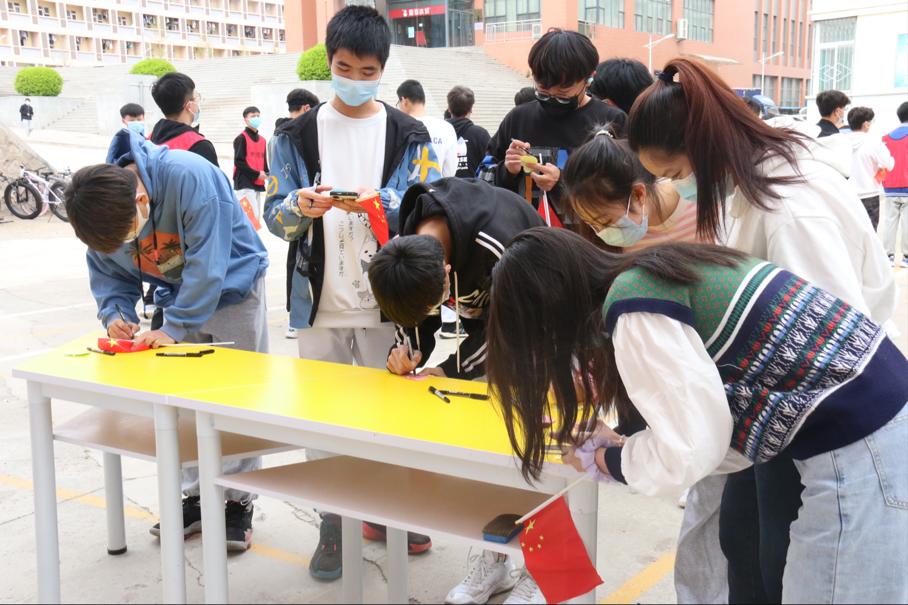 启动仪式上,院团委王彪老师带领学生做了热身操,学生会主席团成员郭一帆带领大家合唱《我和我的祖国》,调动了同学们的热情和活动现场的氛围。学院党委副书记魏媛媛莅临活动现场对国产a片