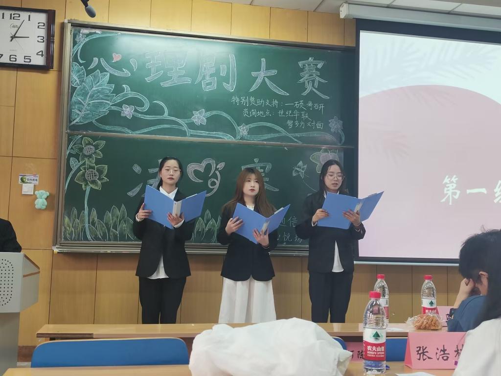 决赛现场,同学们通过“自己演、演自己”,将大学生日常生活与心理健康教育相融合,以大学生自我成长、追求梦想、网络暴力、人际关系等方面心理冲突为立足点,演绎出校园中常见的心理困惑及排解方法,表达质朴,感情真挚,引人深思,发人深省,引发了现场观众的强烈共鸣。     不同的剧目带来的不同的感受,其中《校园爱情》、《网络世界》、《面具人生》、《学习生活》、《家庭关系》这些剧目给观众们留下了深刻的印象。校园心理剧把学生在生活、学习、交往中的心理冲突、烦恼、困惑等,以小品表演、角色扮演、情景对话等方式编成“小剧本”进行表演,在剧中融入心理学的知识原理和技巧,有效提升学生心理健康成效。