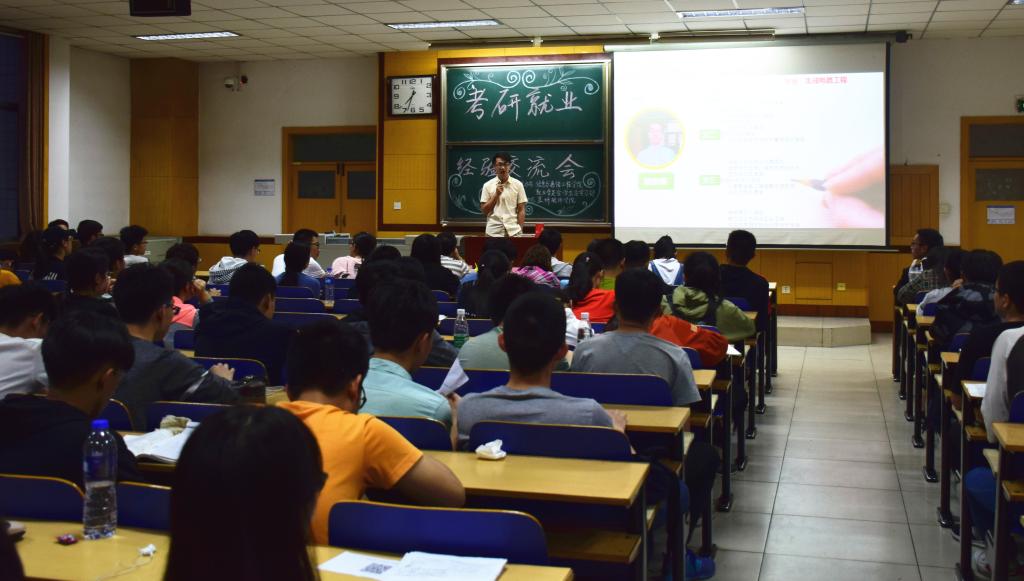 信息对抗技术、生物医学工程、信息工程三个专业的同学。每场经验交流会均请到了2018届毕业生中在考研和就业过程当中颇有心得、经验丰富的考研大神或就业达人。他们从自己的亲身经历出发,倾囊相授,与大家分享了详细实用的经验和技巧,并回答了同学们的相关疑问。每场交流会几乎都座无虚席,不仅有三年级的同学还有其他年级对其感兴趣的同学到场认真聆听,在交流环节,现场同学也积极提问,主动沟通,现场气氛活跃有序,大家均有获益。