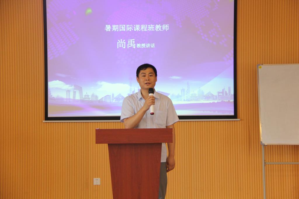 杨风暴院长发表重要讲话,他首先祝贺52名同学顺利结业,收获了与众不同的学习体验;其次,他感谢所有为本次培训顺利举办而辛苦付出的校院领导、相关处室负责人、老师和同学们;最后,杨院长希望同学们能将本次培训学到的知识运用到今后的学习中,并将国际化理念传播和扩散到更多的同学中去,真正提升学院国际化办学水平。