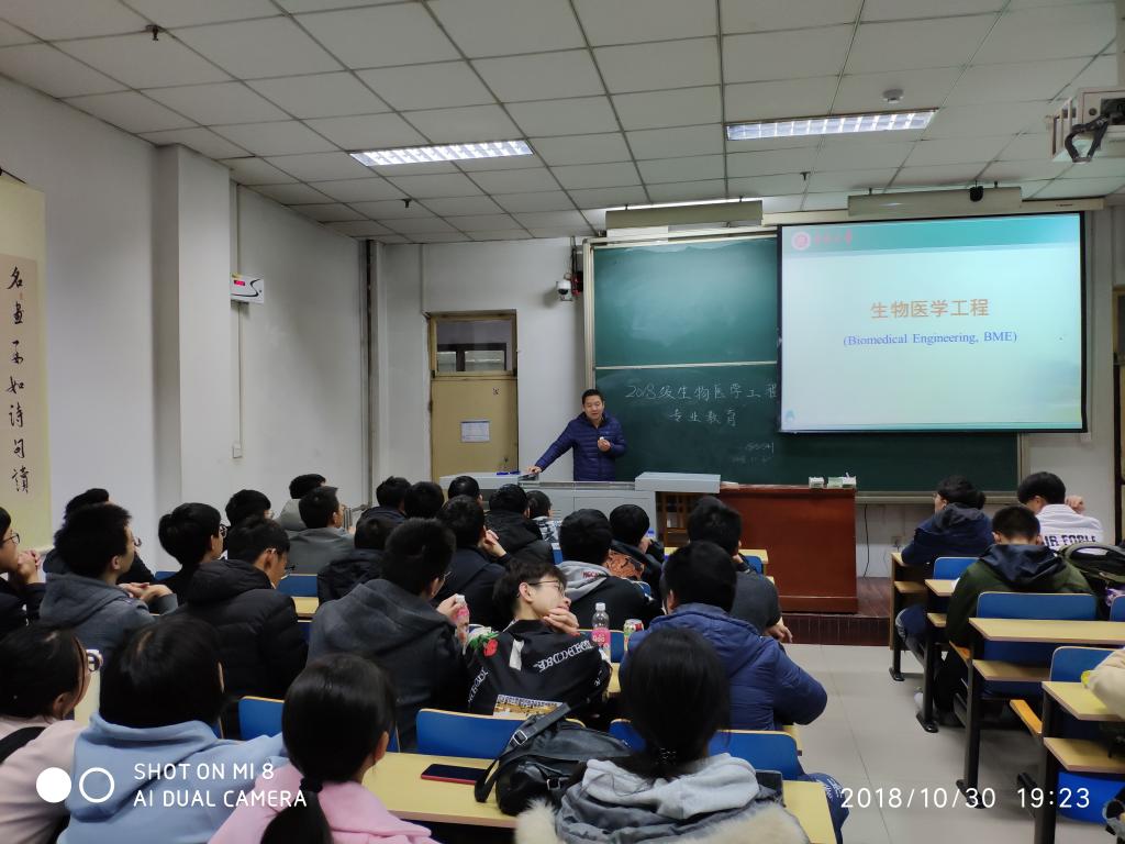 为提高新生对专业的认知,2018年10月30日晚19点,生物医学工程专业学科管理部主任张权教授11111H教室2018级生物医学工程专业进行了一场别开生面的专业教育。