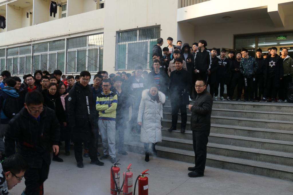 2018年12月25日下午4:00,由国产a片 联合学校保卫处、校医院组织的消防演练于文韬四号、五号楼展开。学院党委书记曹凤才教授、保卫处向远峰老师、校医院田大夫、学生科科长任雁老师、全体辅导员参加了此次演练活动。