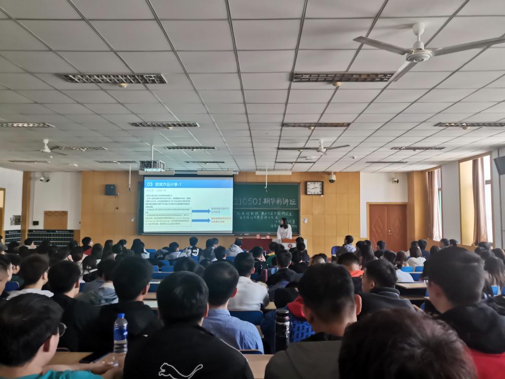 随后由参赛获奖团队代表为大家分享参赛心得与体会,高敏博士以获奖作品为案例,为同学们讲解了软硬件的技术要求,技术文档中需要突出的部分,选题后团队分工合作的重要性,队长如何合理安排等内容。苗婉茹同学为大家详细介绍了比赛的流程,比赛过程中需要掌握的知识与技能,需要准备的资料等情况。最后由刘佳鑫同学对于论文内容的要求,以及研电赛的赛制、赛点、评分细则等作出一定的解释。三位同学都非常感谢老师以及学院给予的帮助和指导,同时也号召同学们积极参与,提高自身能力。