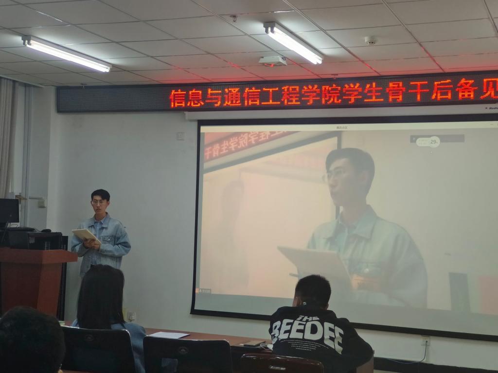 师生更好的服务。并且他强调各学生骨干后备在保质保量完成工作的同时,还应努力锻炼、丰富自己。接着,各后备干部按照顺序进行了精彩的自我介绍并分享了自己在岗位上工作的感触。之后院学生会执行主席李泊桥向各后备分享了自己积累的工作感悟,他指出各后备应全心全意服务同学,增强内部凝聚力,多进行学生后备工作改革创新。