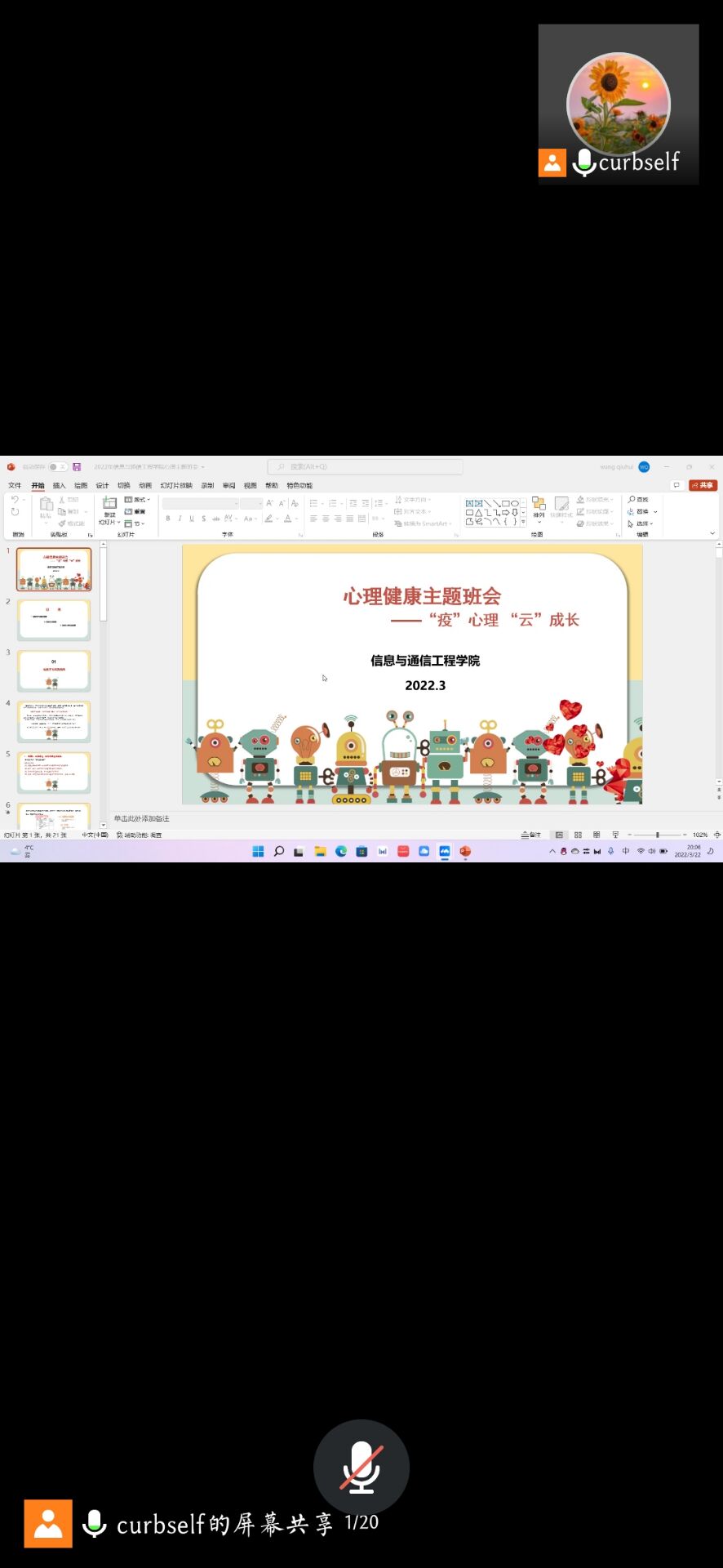 为进一步做好疫情防控背景下学生的心理问题疏导和帮扶工作,提高学生的心理调节能力,培养良好的心理品质,以积极心态科学应对疫情,4月中旬,学院面向本科生各班级开展““疫”路同行,守护心理健康”和““疫”心理 “云”成长”心理健康教育主题班会。此次心理健康教育主题班会的召开,有助于同学们养成积极乐观的心态,更有利于当前形势下国产a片 学生心理健康教育工作的进一步开展,促进了学生身心健康和谐发展,营造了和谐健康的校园文化氛围。