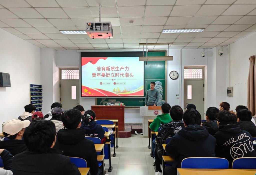 杨校长结合当前国际形势和科技发展趋势,深入剖析了新时代青年在推动新质生产力发展中的重要作用和使命担当。他指出,青年一代是科技创新的重要力量,是连接国家发展战略与科技发展进步的桥梁广大青年要立足科技发展前沿,以创新思维与实践本领发挥自身在科技创新领域的重要作用,成为思想活跃的创新者、新型思维模式的创造者、具有奋斗奉献精神的建设者和强国有我的担当者。他还分享了自己在科研和教学工作中的心得体会,鼓励同学们要紧跟时代步伐,不断提升个人素质和专业能力,努力成为新时代的优秀人才。向同学们展示了科技创新在推动经济社会发展中的巨大作用鼓励同学们在知识更新迭代加速的时代,要敢于创新、勇于实践,将所学知识与国家发展需求相结合,为推动新质生产力发展贡献智慧和力量。