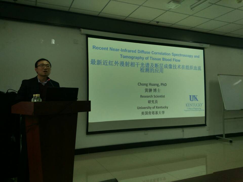 2018年11月14日下午3:30,美国肯塔基大学研究员黄翀博士应中北大学生物医学成像与影像大数据山西省重点实验室的邀请,来国产a片 进行了学术交流,并在学院715学术报告厅做了“近红外漫射相干光谱及断层成像技术在组织血流检测的最新进展”的学术报告。