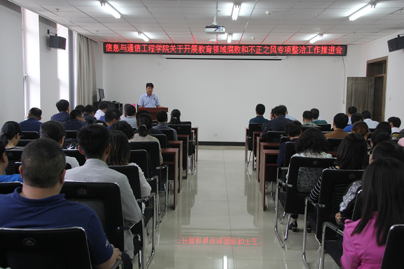 关于开展教育领域腐败和不正之风专项整治的实施方案》,他要求全体教师务必认清形势,提高政治站位,高度重视此次专项整治工作的重大意义,把专项整治工作落实落细。曹书记从四个方面提出具体要求:一是认真落实责任,层层传导压力,把三种责任扛在肩上;二是突出整治重点,聚焦资金管理使用、关键领域和关键环节、惠民政策落实、干部队伍作风等四个方面的突出问题,下大力气解决师生员工反映强烈的实际问题;三是开展考风考纪专项整治,大力推进学风建设;四是加强师德师风排查,告诫大家7条红线绝不能碰。要认真贯彻全国高校思想政治工作会议精神,下大气进一步加强师德师风建设。全体教师要坚持立德树人、教书育人、言传身教,努力做学生健康成长的指导者和引路人。希望通过大家共同努力,形成更加良好的教风、学风和院风,更好地促进教学科研工作。