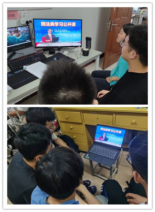 学院党委组织师生通过集中学习和个人自学、线上和线下相结合等方式,观看、收听了由最高人民法院审判委员会副部级专职委员刘贵祥主讲的《民法典与社会生活密切相关的几个问题》和中国人民大学常务副校长王利明主讲的《民法典的中国特色、实践特色、时代特色》公开课。
