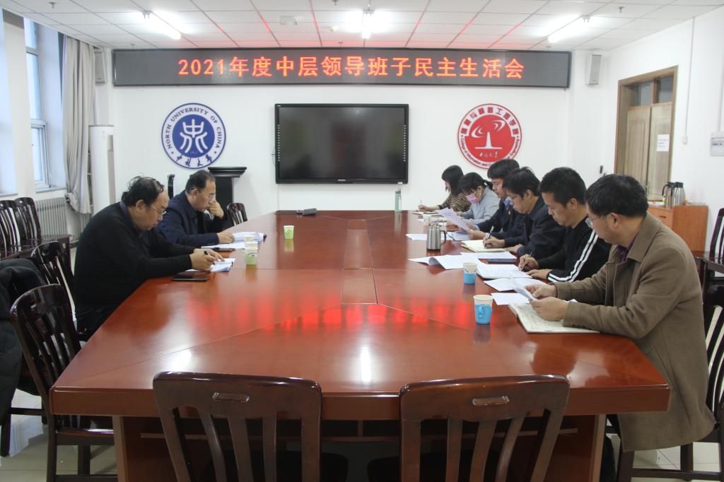 在科学楼B座713会议室组织召开了2021年度中层党员领导干部民主生活会。会议由院党委书记曹凤才主持,苏铁熊副校长、校纪委委员段义权出席会议并指导,院领导班子全体成员参加了会议。