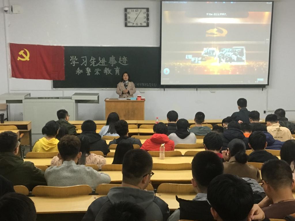 学生党支部组织党员在10301H集中观看了先进事迹和警示教育纪录片。
