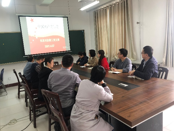 2021年4月27日下午,信息对抗技术教工党支部在无损检测楼603会议室召开全体党员大会,进行党史专题学习。