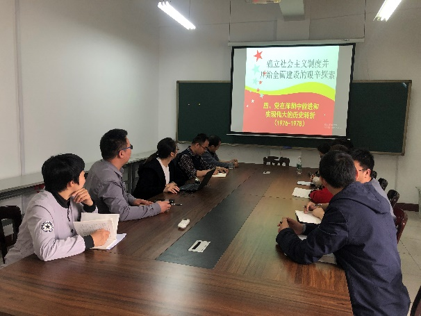首先,支部书记姚金杰跟大家讨论了党史学习实践活动的组织形式、时间、地点等事宜。接下来,支部副书记罗秀丽通过PPT的形式跟大家共同学习了社会主义革命和建设时期中国共产党的发展历史。