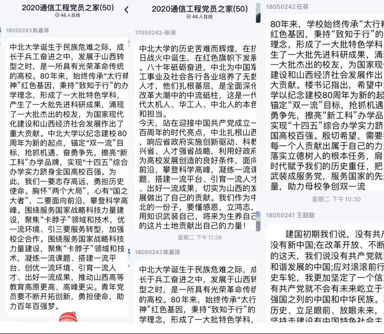 我们将秉持红色太行精神,致知于行,开启“十四五”征程,顺应山西转型发展,乘风新时代、紧抓新机遇、展现新风貌、再创新佳绩,为推动学校建设成为创新发展引领、具有鲜明特色和重要影响的高水平教学研究型大学,冲击“双一流”建设高校、实现“百年百强”中北梦而接续奋斗。全体党员将在习近平新时代中国特色社会主义思想的指导下,坚定贯彻党的教育方针,配合学校学院的教育部署,朝着冲击“双一流”和转型发展的目标奋斗!