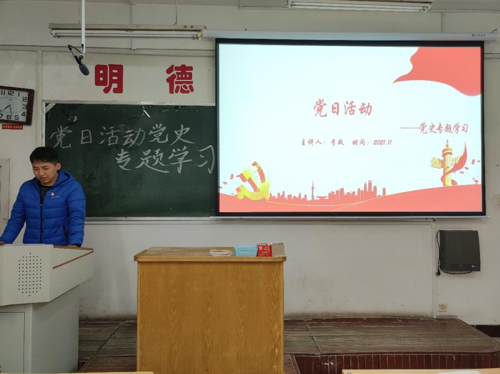 为了使支部党员更加深刻领悟党史、传承红色基因、牢记初心与使命、坚定正确的方向。通信工程专业学生党支部于2021年11月12日在10206Z举办“争学党史,砥砺前行”为主题的党日活动。