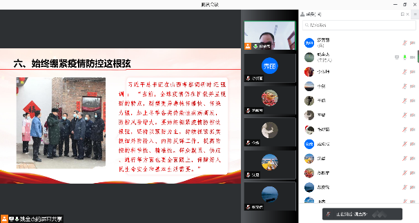 此次线上集中学习,党员同志们进行了热烈讨论,大家纷纷表示,一定要深入学习贯彻习近平总书记考察调研山西重要指示精神,主动带头学,融会贯通学,联系实际悟,充分发挥党员教师的先锋模范带头作用。