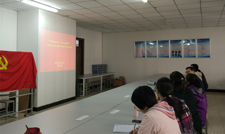 2019年10月31日下午,通信工程教工党支部在科学楼二层212实验室召开了主题为“不忘初心 牢记使命”主题党日的支部党员大会,会议由支部书记王晨光主持,在校支部全体党员及本专业教师参会。